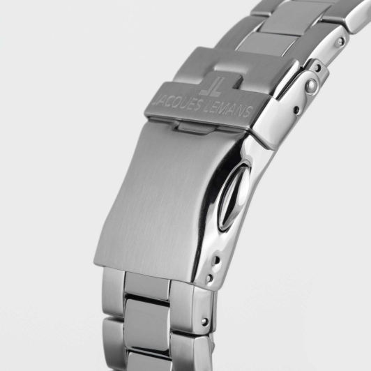 - циферблат украшен фирменным логотипом Jacques Lemans;