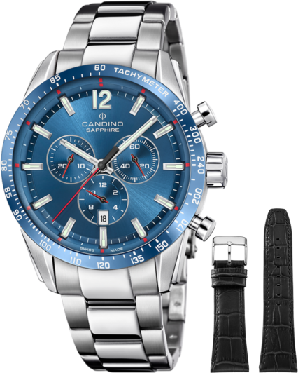Мужские наручные часы-хронограф Candino C4757/F с дополнительным ремешком из коллекции Gents Sport сочетают в себе спортивный дизайн и надежность швейцарских технологий.