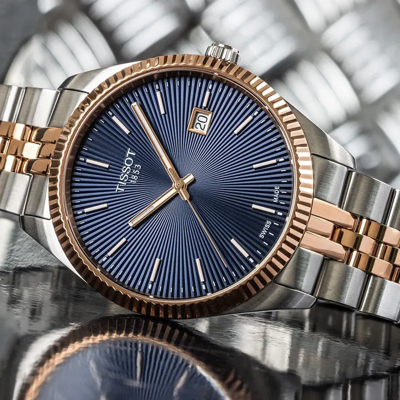 - рифленый безель с PVD-покрытием цвета розового золота;