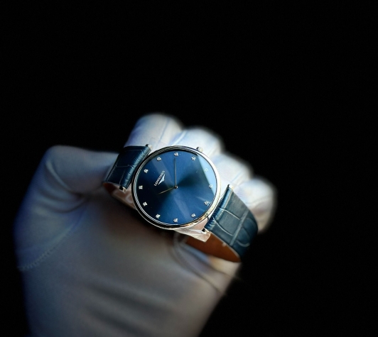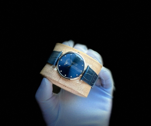 - компактный синий циферблат украшен 12 бриллиантами общим весом 0,081 карата;