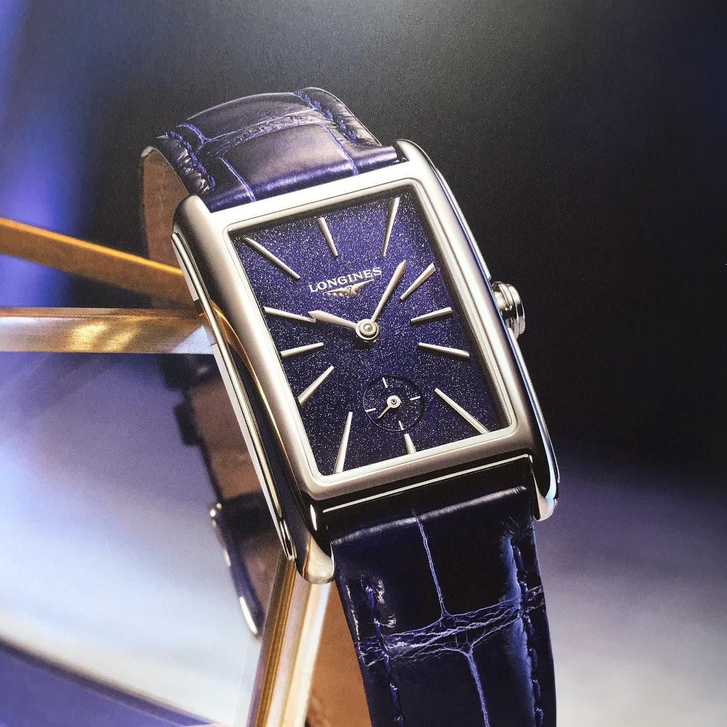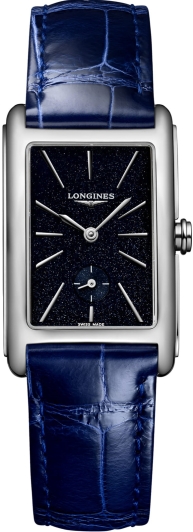 Женские кварцевые часы Longines Dolce Vita с синим циферблатом L5.512.4.93.2 и с прямоугольным стальным корпусом.
