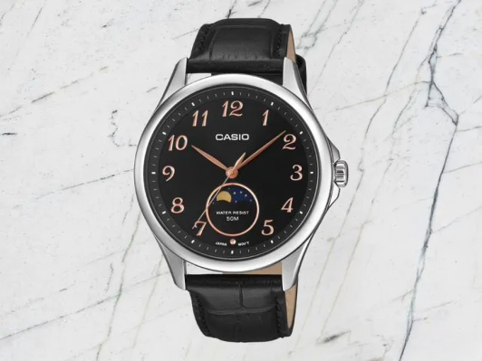 - на циферблате черного цвета на отметке 6-ти часов расположен индикатор фазы луны;
